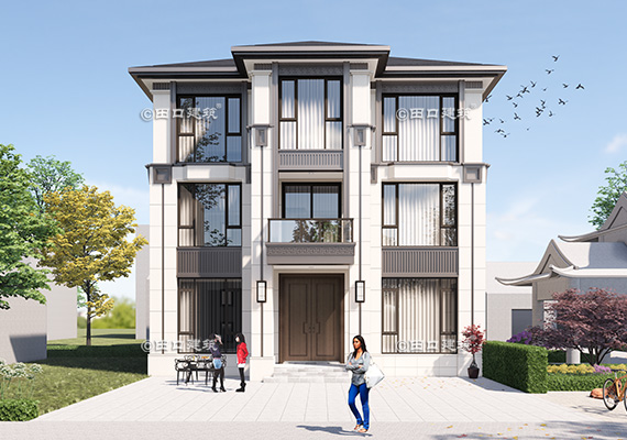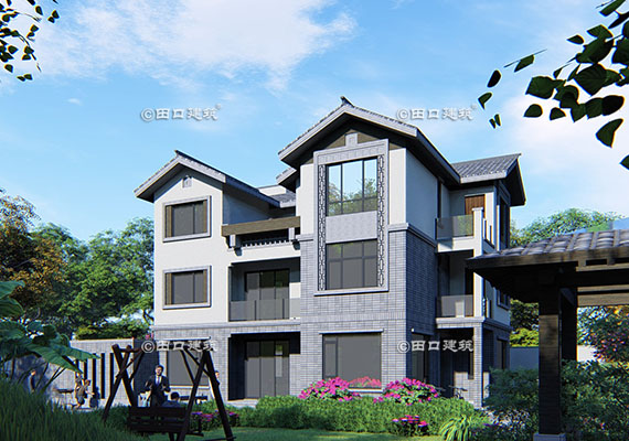 占地面積 134.8㎡ 土建造價 45.0萬 三層中式田園風格別墅