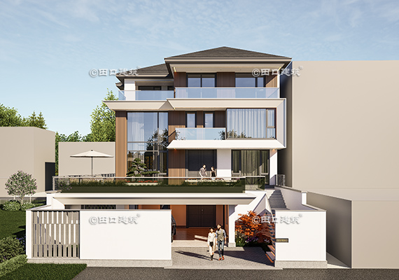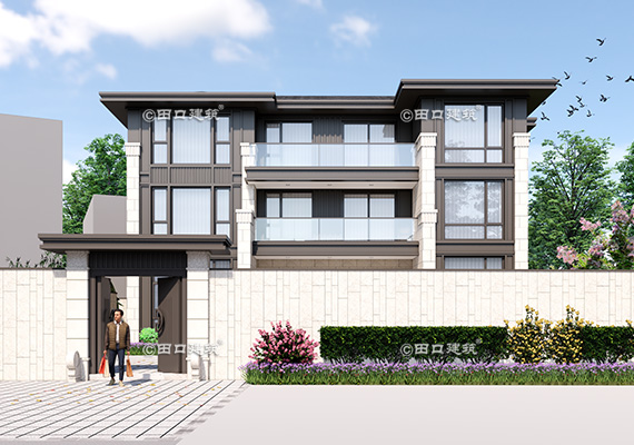 占地面積 300.0㎡ 土建造價 95.0萬 雙拼三層新亞洲風格別墅